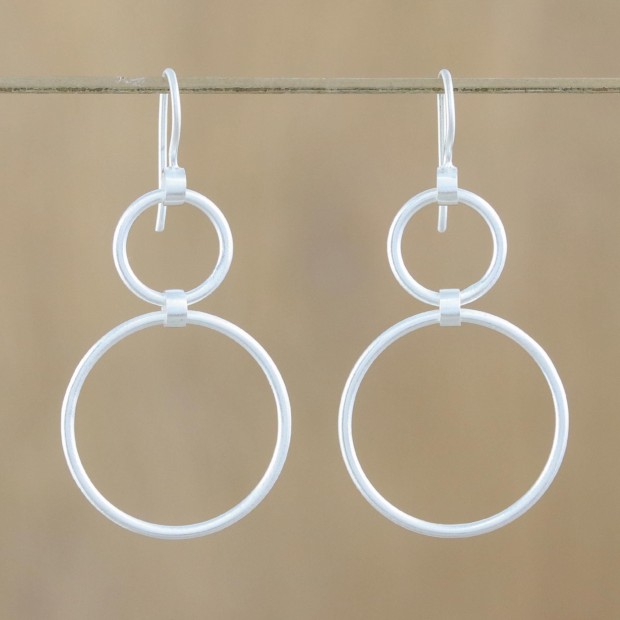 Unique Modern Sterling Silver Dangle Earrings, 'Cycles'
