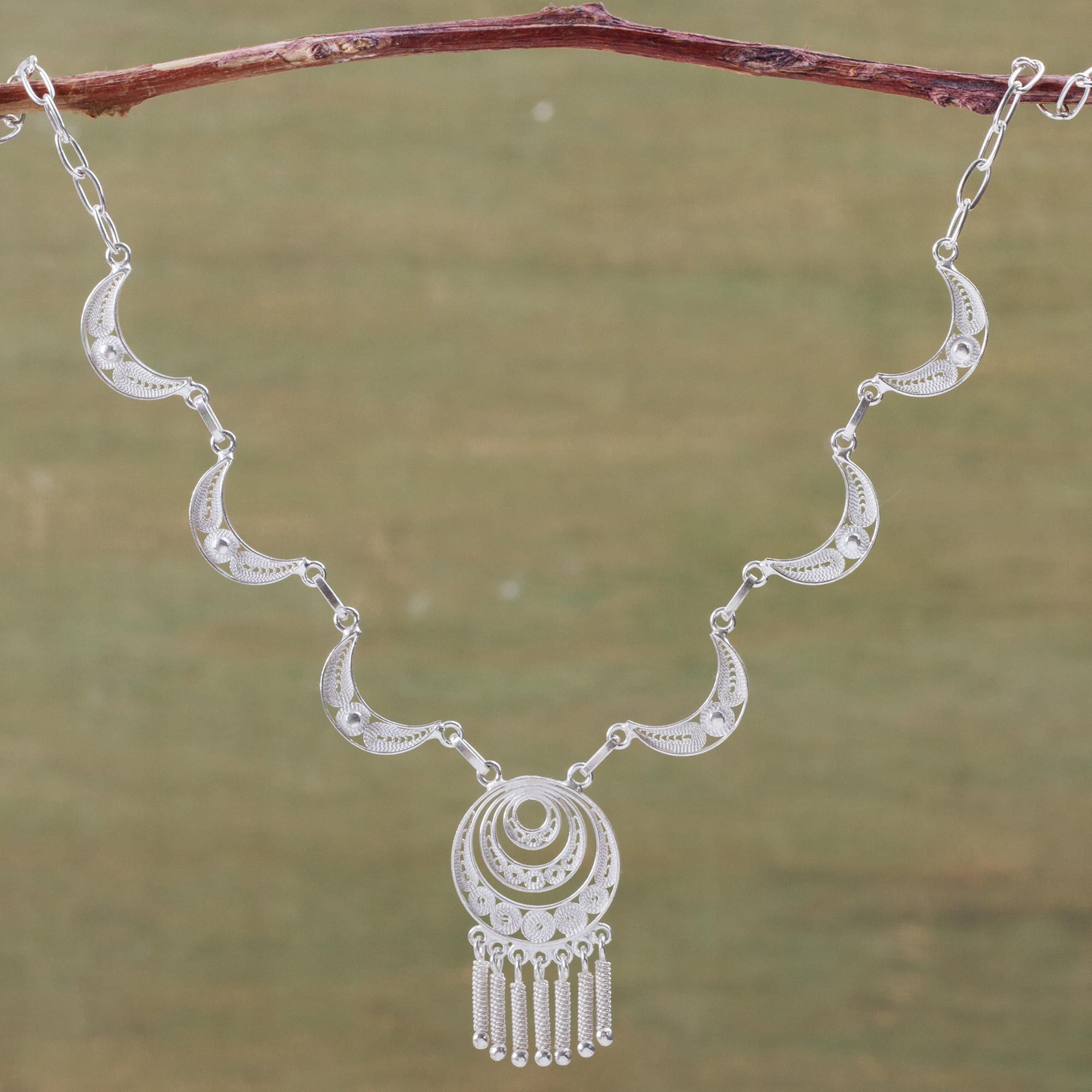 Unique Peruvian Sterling Silver Necklace, 'Lunar Dreamscape'