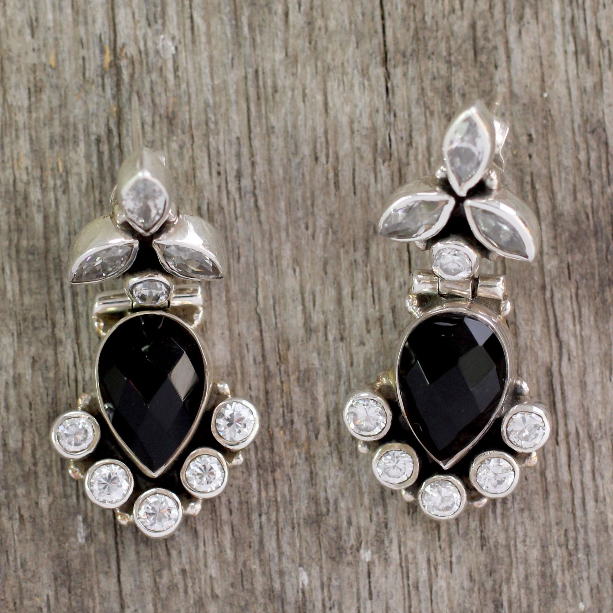 Wear these beautiful earrings with any look! Elegant for formal affairs yet playful enough for everyday. Designed by the talented Neeru Goel, these earrings have a dramatic contrast sparkling white quartz and hauntingly beautiful onyx. This unique set of earrings are sure to bring out your distinct personality while retaining a classic elegance that will match any look.