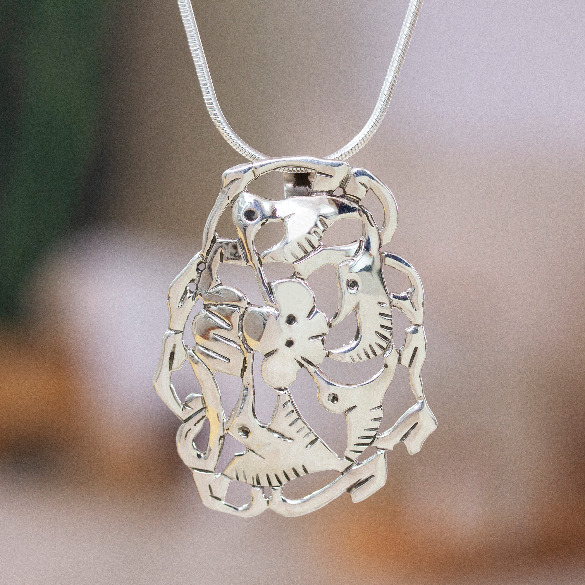 Hummingbirds flutter around a luminous flower in the fascinating design of this sterling silver necklace. Inspired by the artistic legacy of Taxco, Alon Diller creates the stunning design for a hand crafted necklace.