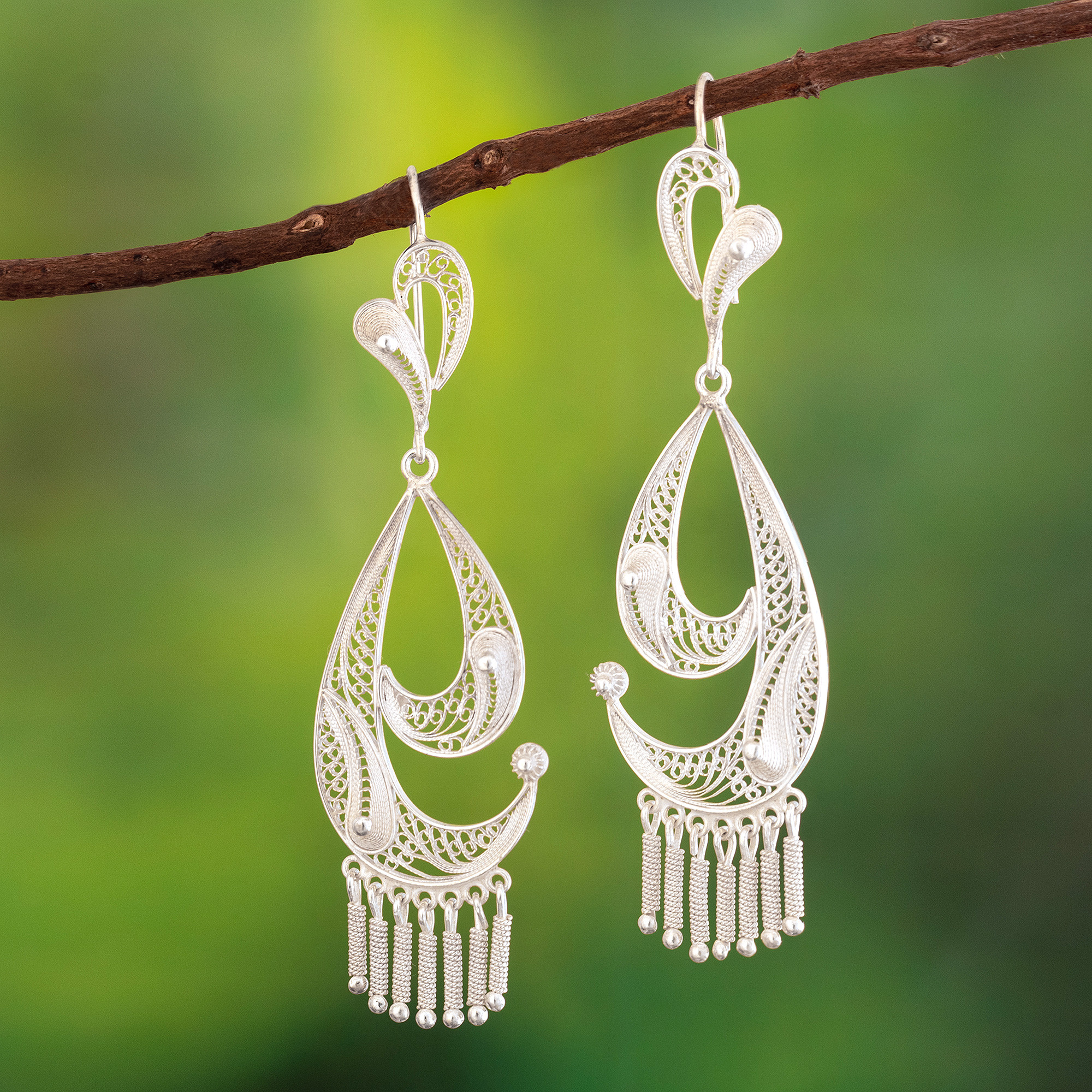 Unique Sterling Silver Chandelier Earrings from Peru, 'Song Chimes'