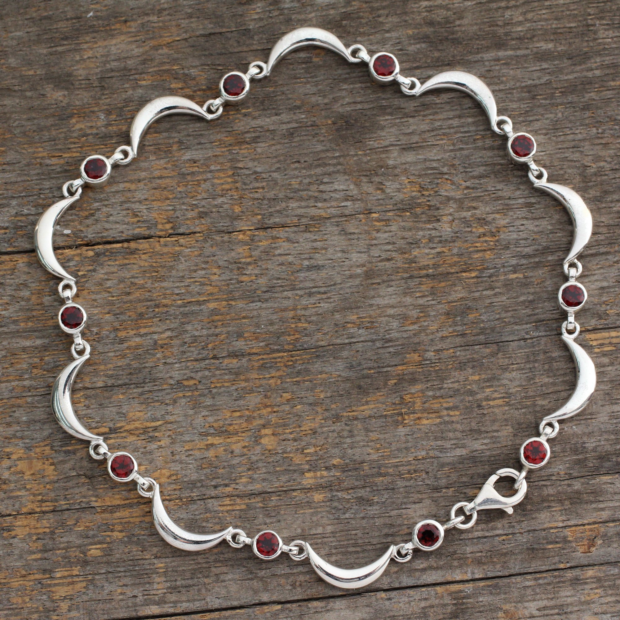 Exspress your passion with this unique and exquisite anklet. Handcrafted with sterling silver surrounded by deep red garnet stones. This beautiful anklet represents everlasting love and passion. Exquisitely handcrafted by India's Shubhra Singh with .925 sterling silver and garnets. An exquisitely designed anklet that you will be sure to love.