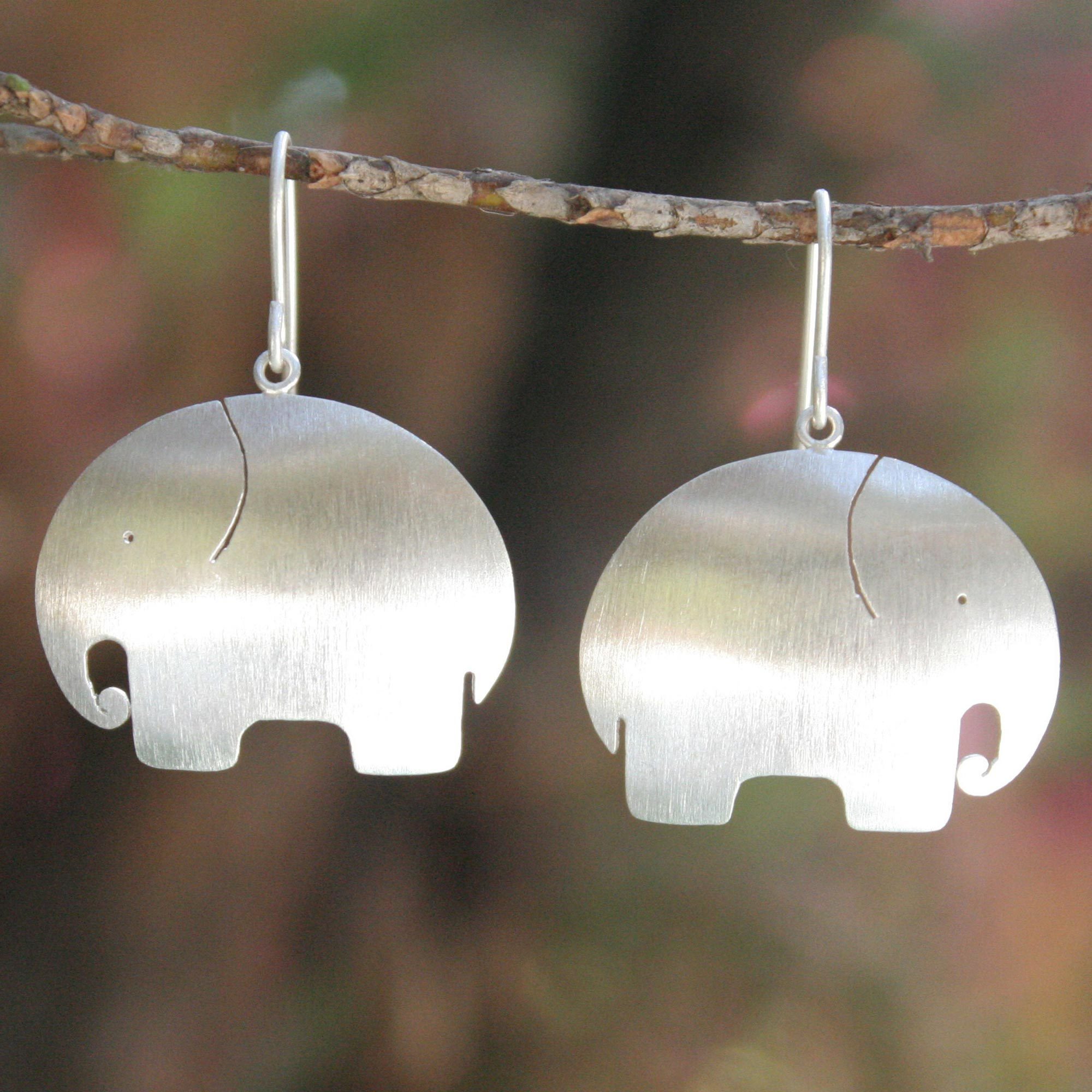 Unique Sterling Silver Dangle Earrings, 'Pretty Elephant'