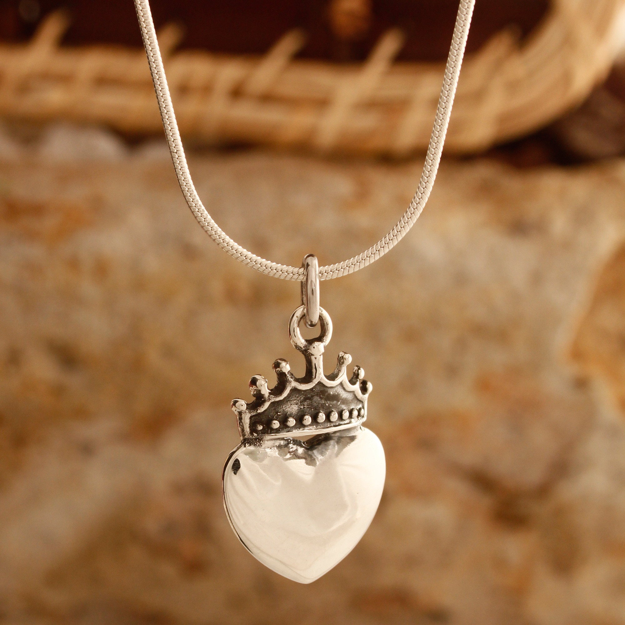 Love is the crowning glory of the heart, and this gleaming symbol of romance is presented in exquisite detail. By Roy Nilson in Mexico, famed Taxco sterling silver is the medium for the jeweler's art, alternating polished and oxidized finishes for maximal effect. Declare your love with this special pendant, a timeless expression of devotion.