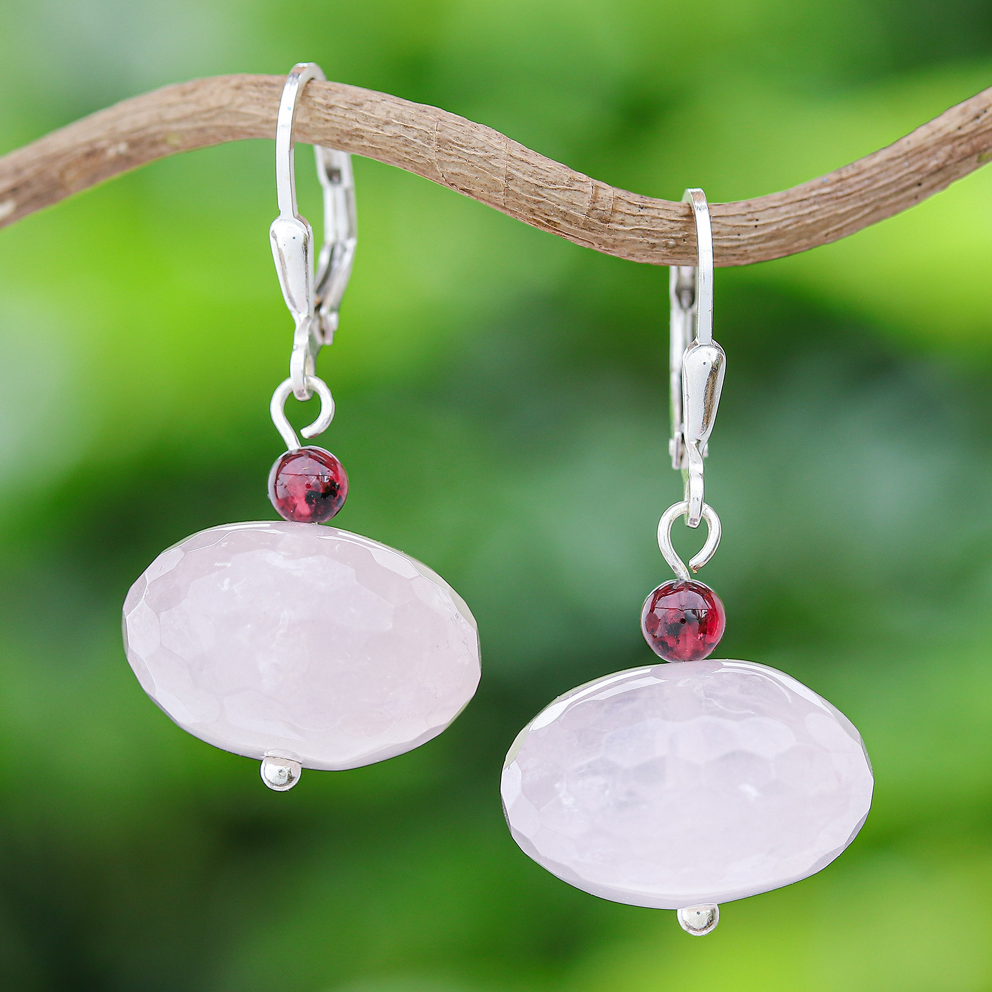 • Rose quartz, garnet and sterling silver