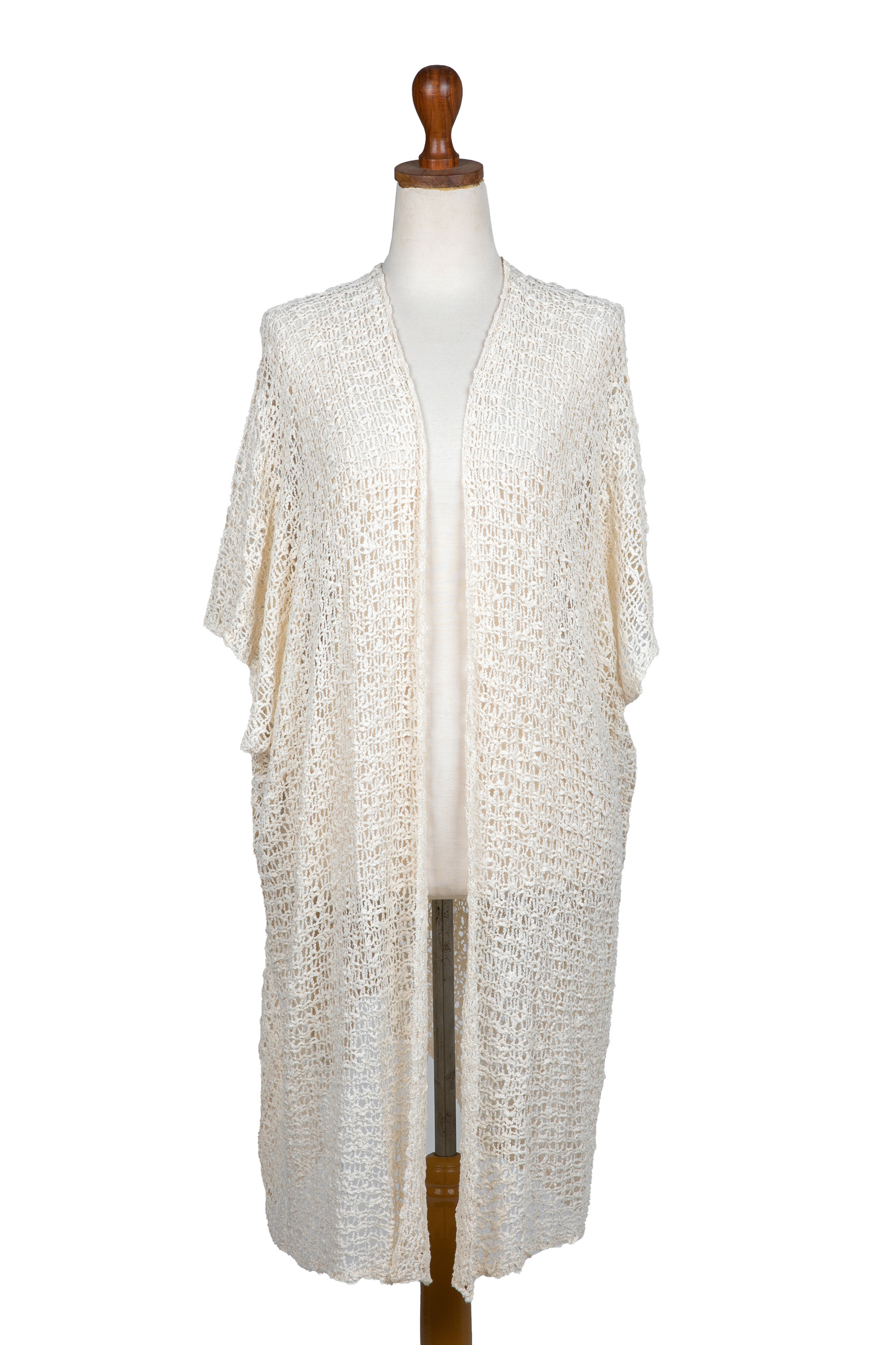 Vanilla Knit Long Jacket with Open Front and Short Sleeves, 'Ultimate Allure in Ivory'