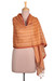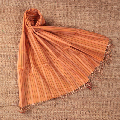 Warm-Toned Striped Cotton and Silk Shawl Handwoven in India, 'Inner Sunset'