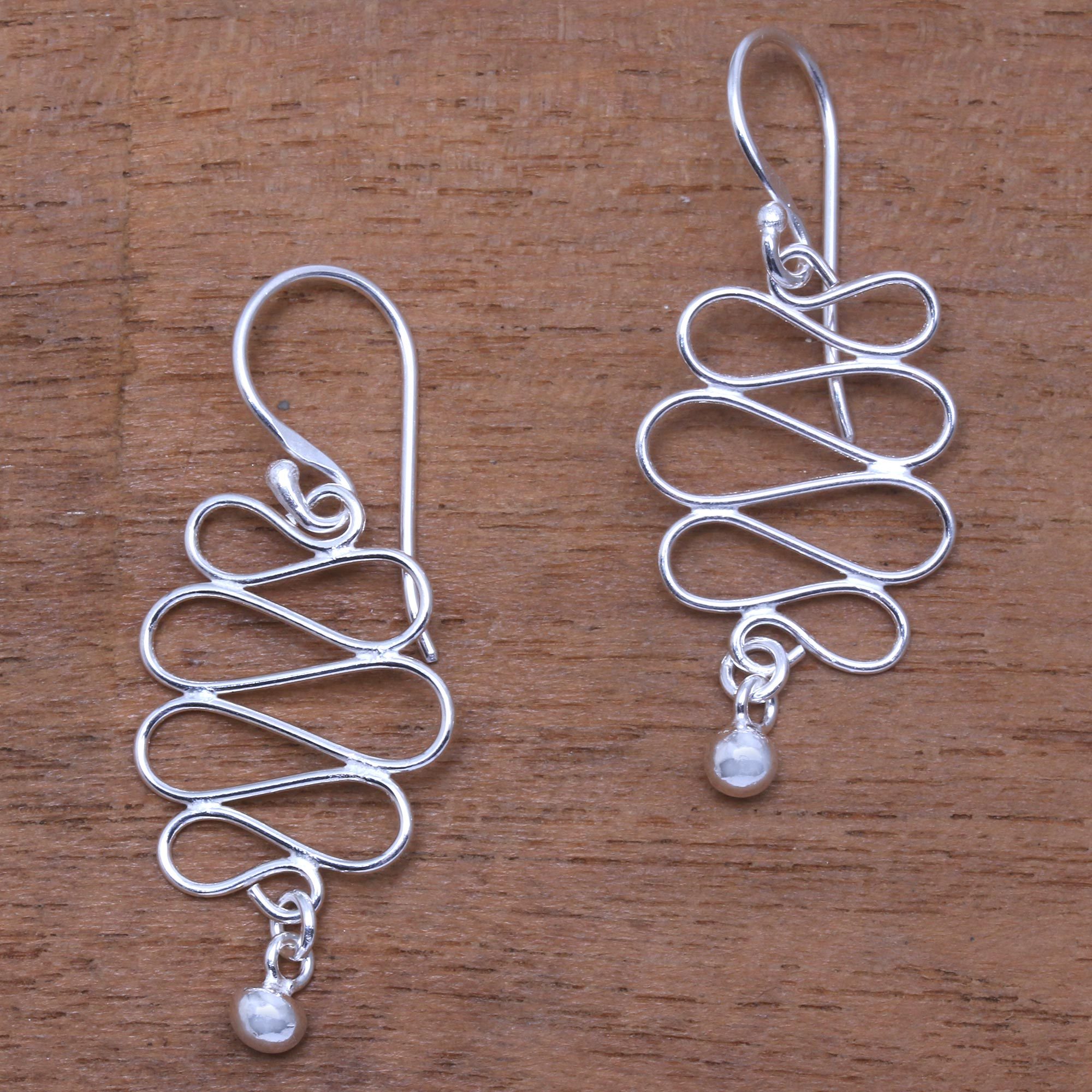 Evoking the path of currents, these dangle earrings from Bali are handcrafted from sterling silver to feature openwork wave patterns. Desi Antari designs the earrings, featuring gleaming baubles that dangle below.