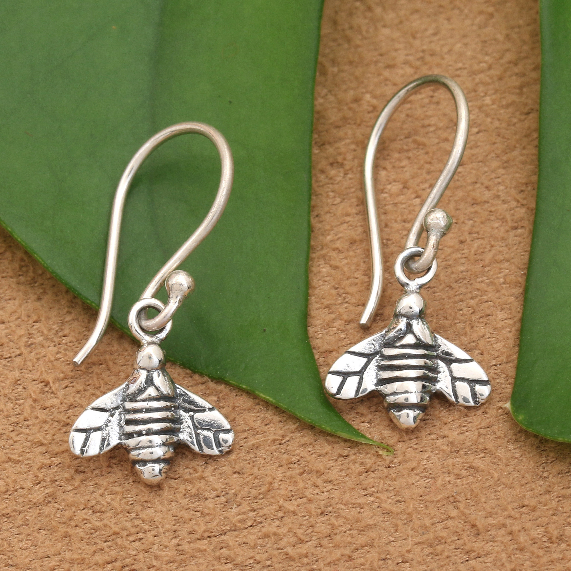 Invite a touch of garden magic into your wardrobe with these whimsical, bee-themed sterling silver dangle earrings. Designed by Bali's talented artisan Anya, these accessories celebrate the industrious spirit of nature with a charming, playful flair. Each earring features a combination finish that artfully blends polished shine with darkened accents to create a rich, tactile texture. Whether you are dressing up for a brunch or adding character to your everyday look, these lovely earrings offer a buzzworthy elegance that feels both handcrafted and high-spirited.