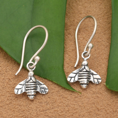 Whimsical Bee-Themed Silver Dangle Earrings from Bali, 'Busy Bee'