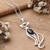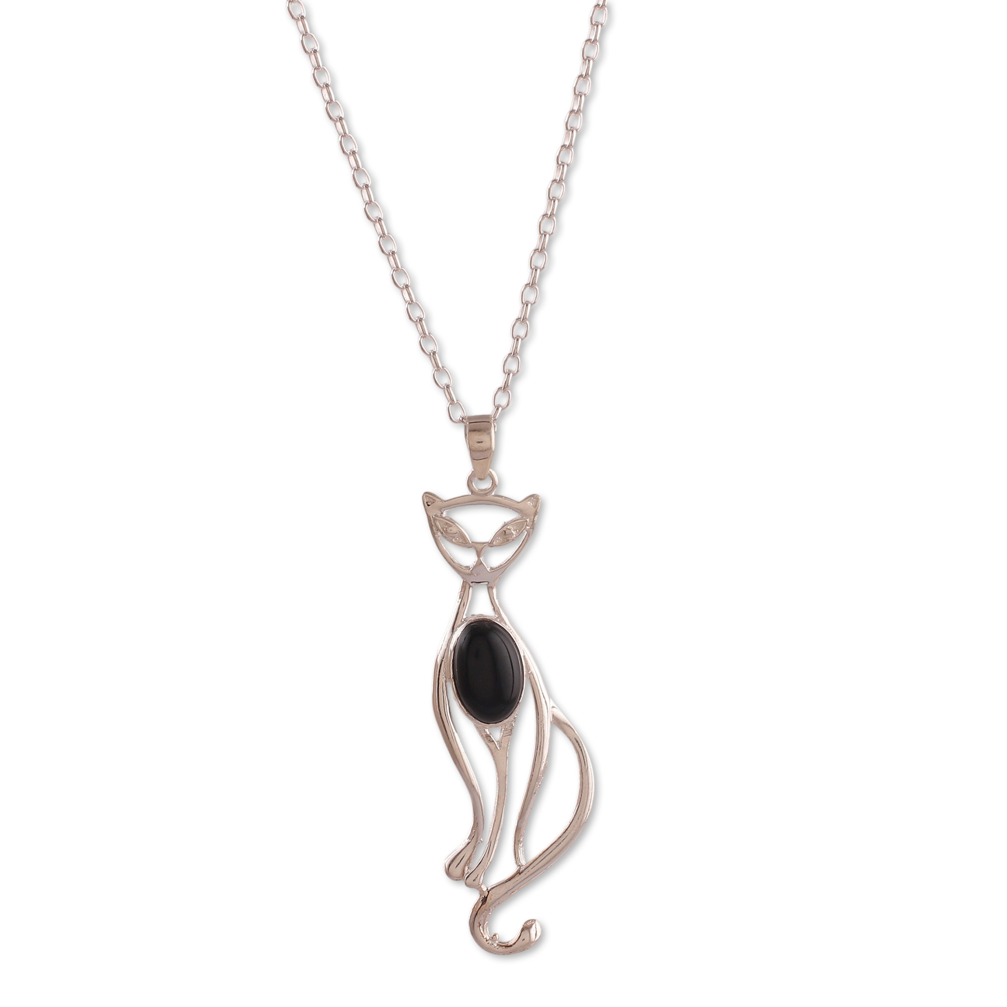 Whimsical Cat-Shaped Black Onyx Silver Pendant Necklace, 'Mystic Cat'