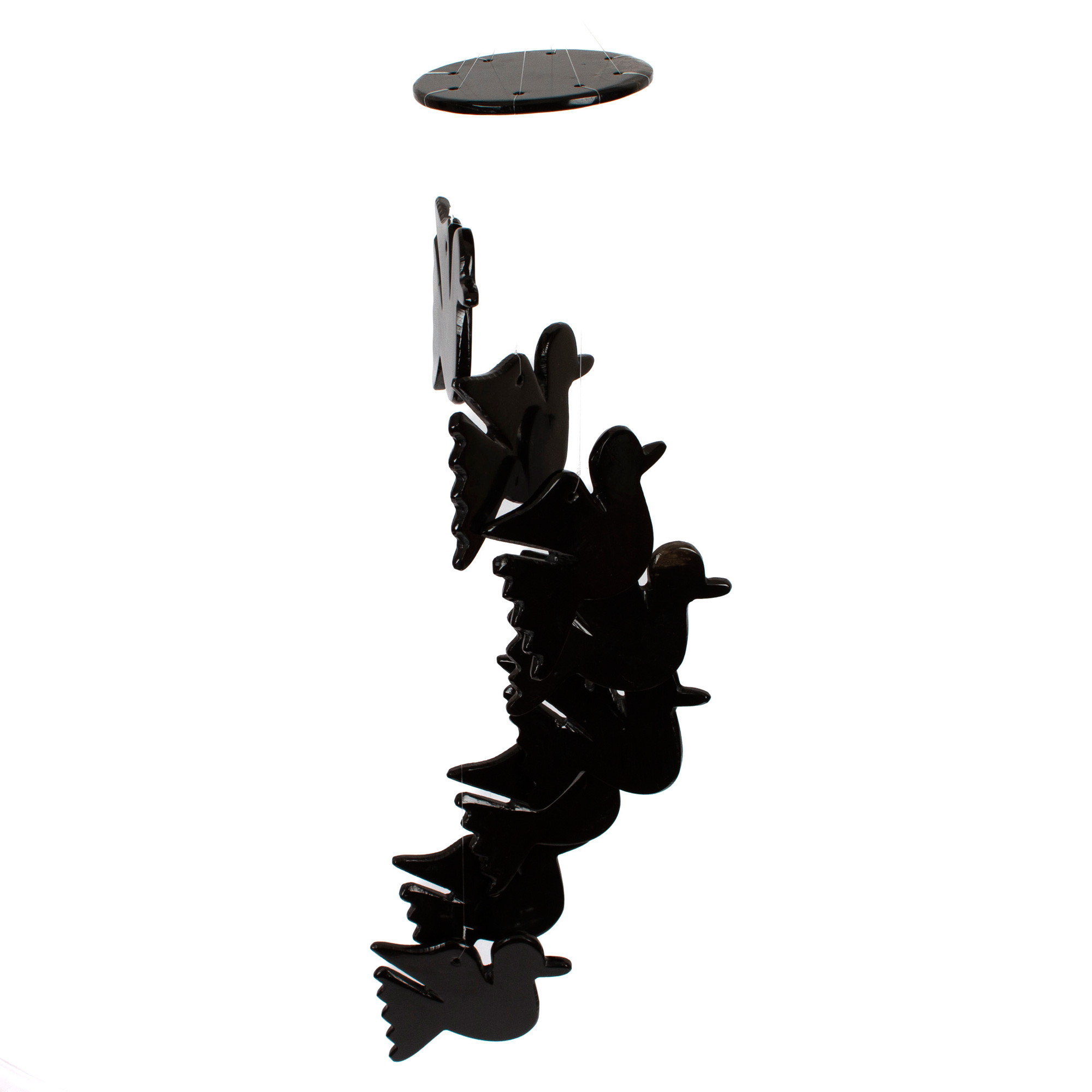 Travel to a world of mystic silhouettes with the Sierra Family's mobile, carved by talented artisans. Black onyx gives life to each of the dove-shaped figures that compose the design, each evoking whimsical sensations and forming a gorgeous illusion made with nylon strings.