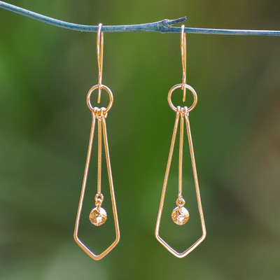 A whimsical tie shape dances with golden sparks in this design from the Balinese islands. Artisan Suana Yasa crafts the pair with geometric details bathed in 18k gold plating, which is later polished for a gleaming look.