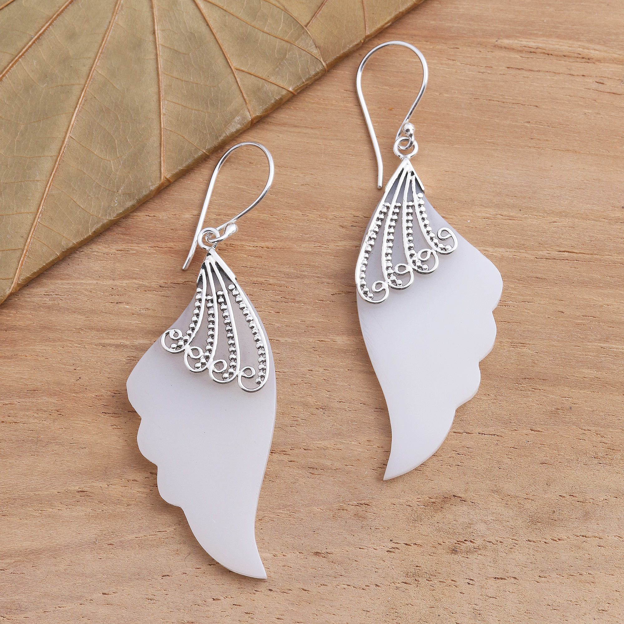 Wing-Shaped Dangle Earrings with Sterling Silver, 'Celuk Wings'