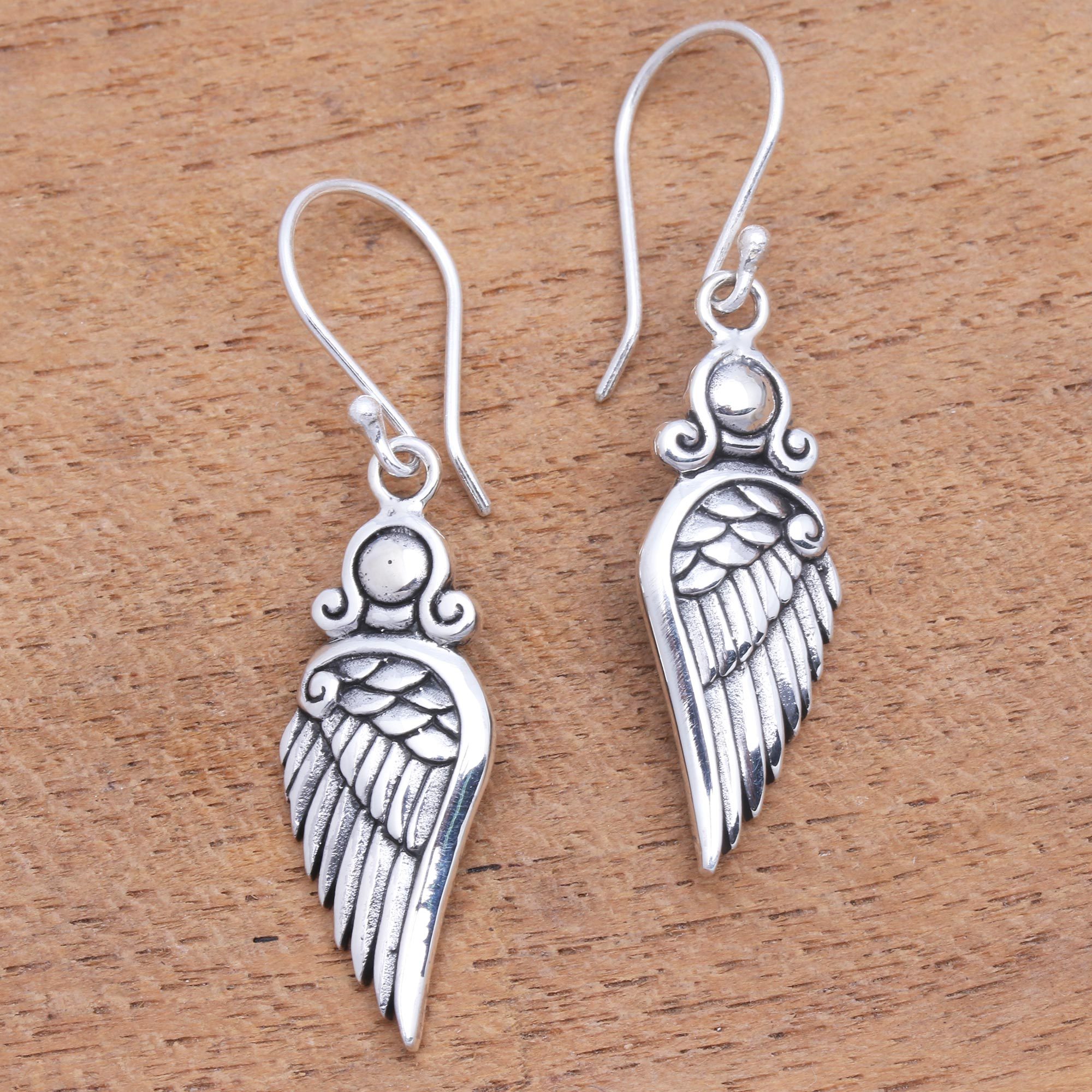 Balinese artisan Dewa Arimbawa creates this flirty pair of dangle earrings. Crafted from sterling silver and treated with a combination of finishes, two wings are elegant.
