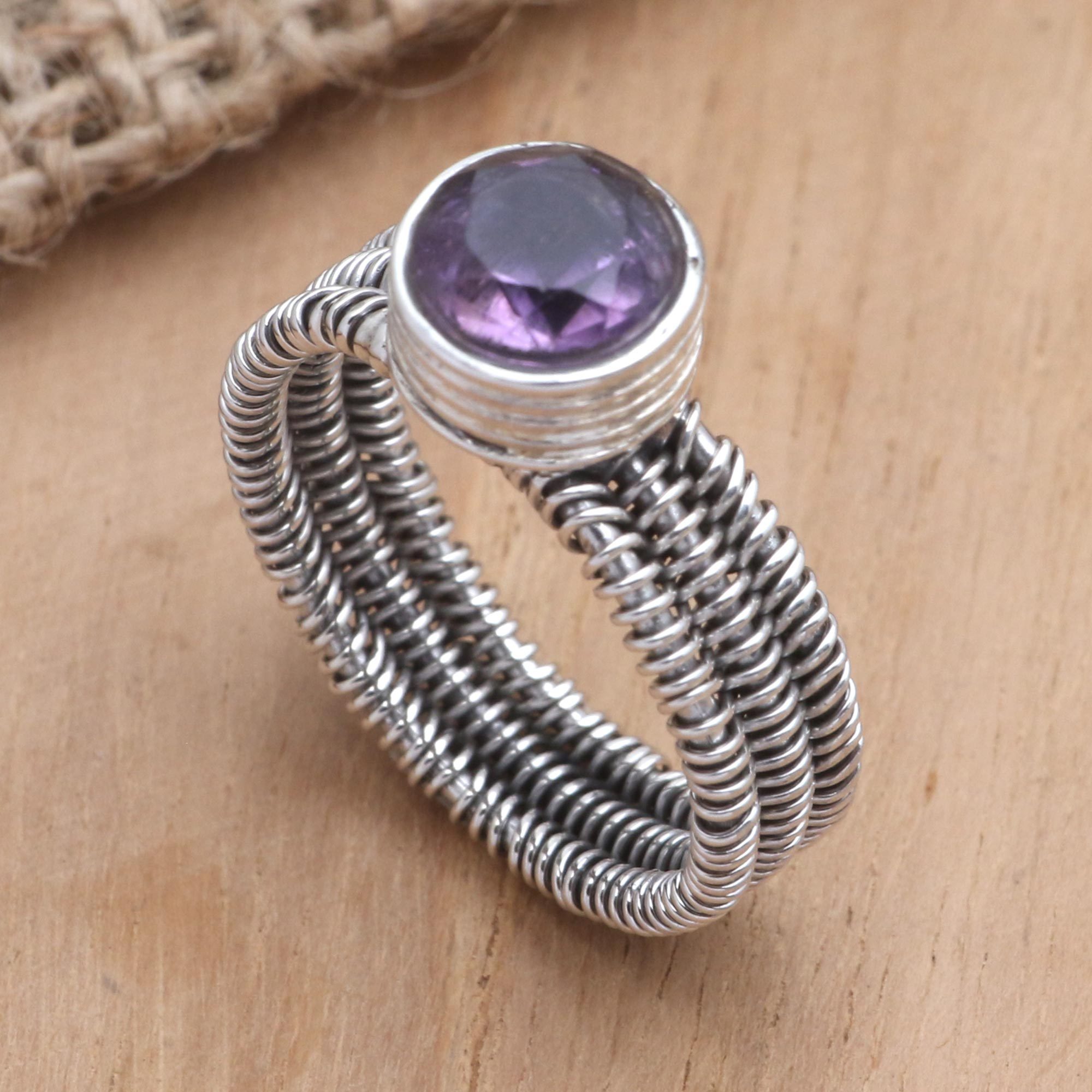 Wire Wrapped Sterling Silver Amethyst Ring, 'Wrapped Up in Violet'