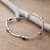 Small black bursts of onyx are surrounded by beautiful sterling silver, creating a simple, yet dramatic and wearable bracelet. Hand crafted by Wayan Asmana, this bracelet features the highest quality polished onyx and .925 sterling silver to create a beautifully contrasting look. This distinctive bracelet can be matched with many other pieces or worn alone to make a simple, striking statement.