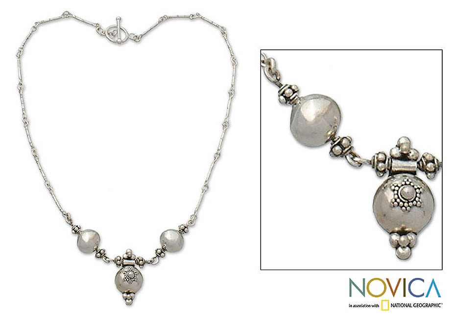 The sterling silver pendant is decorated with a beautiful sun engraving. Just like the sun, this necklace will brighten any wardrobe. Crafted by Wayan Sarjana, this pendant necklace is made just for you. It's gorgeous sterling silver will match day or night attire.