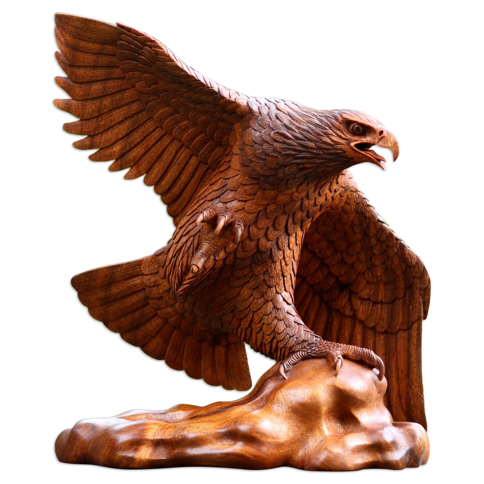 Wood sculpture, 'Eagle Hunter'