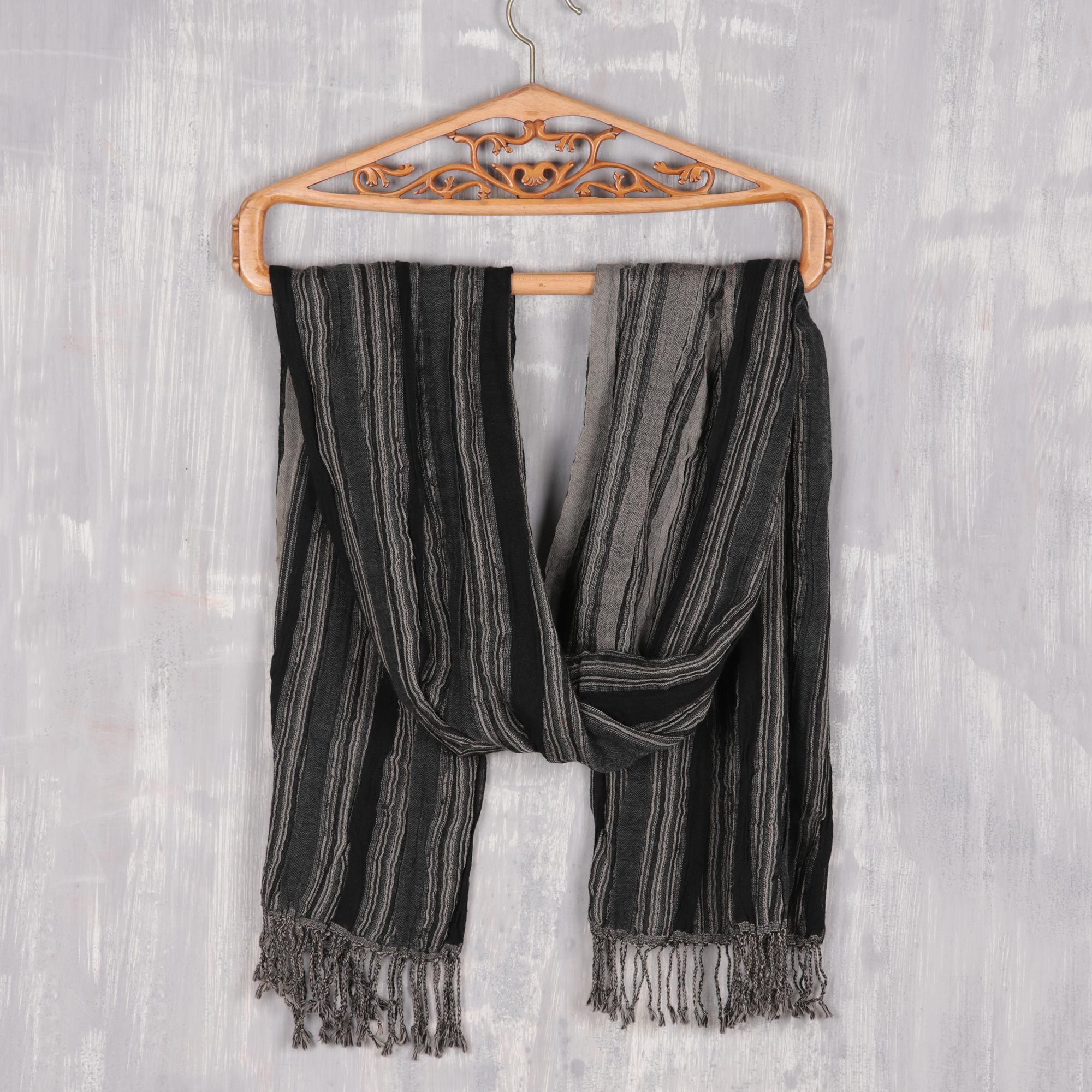 Wool Scarf with Subtle Stripes Crafted in India, 'Chic Stripes'