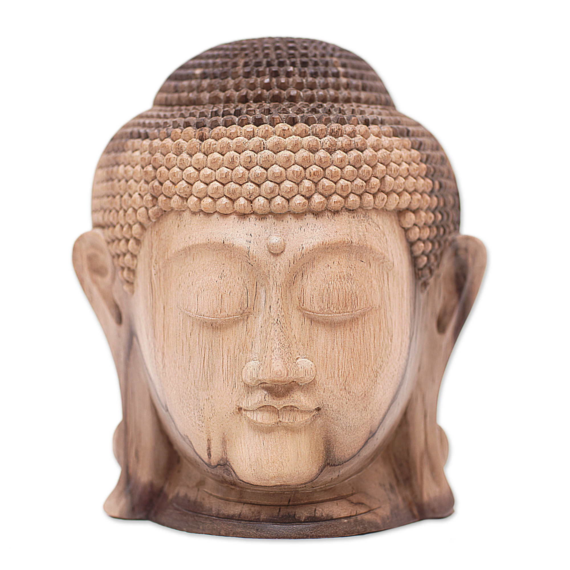The Buddhist concept of a peaceful life inspires this hand-carved hibiscus wood sculpture depicting the serene face of Buddha, blessing all those within his presence. At the center of a world suspended in equilibrium, Buddha seeks discipline and selflessness among the inhabitants of the Earth.