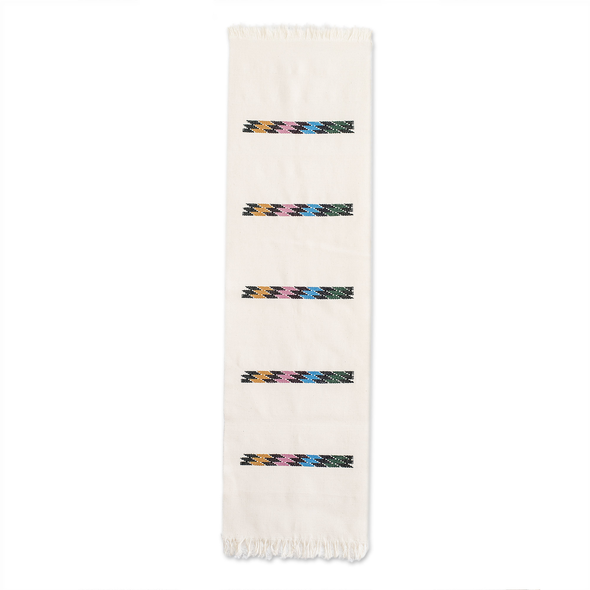 Woven Colorful Cotton Table Runner in an Alabaster Base Hue, 'Alabaster Rainbow'