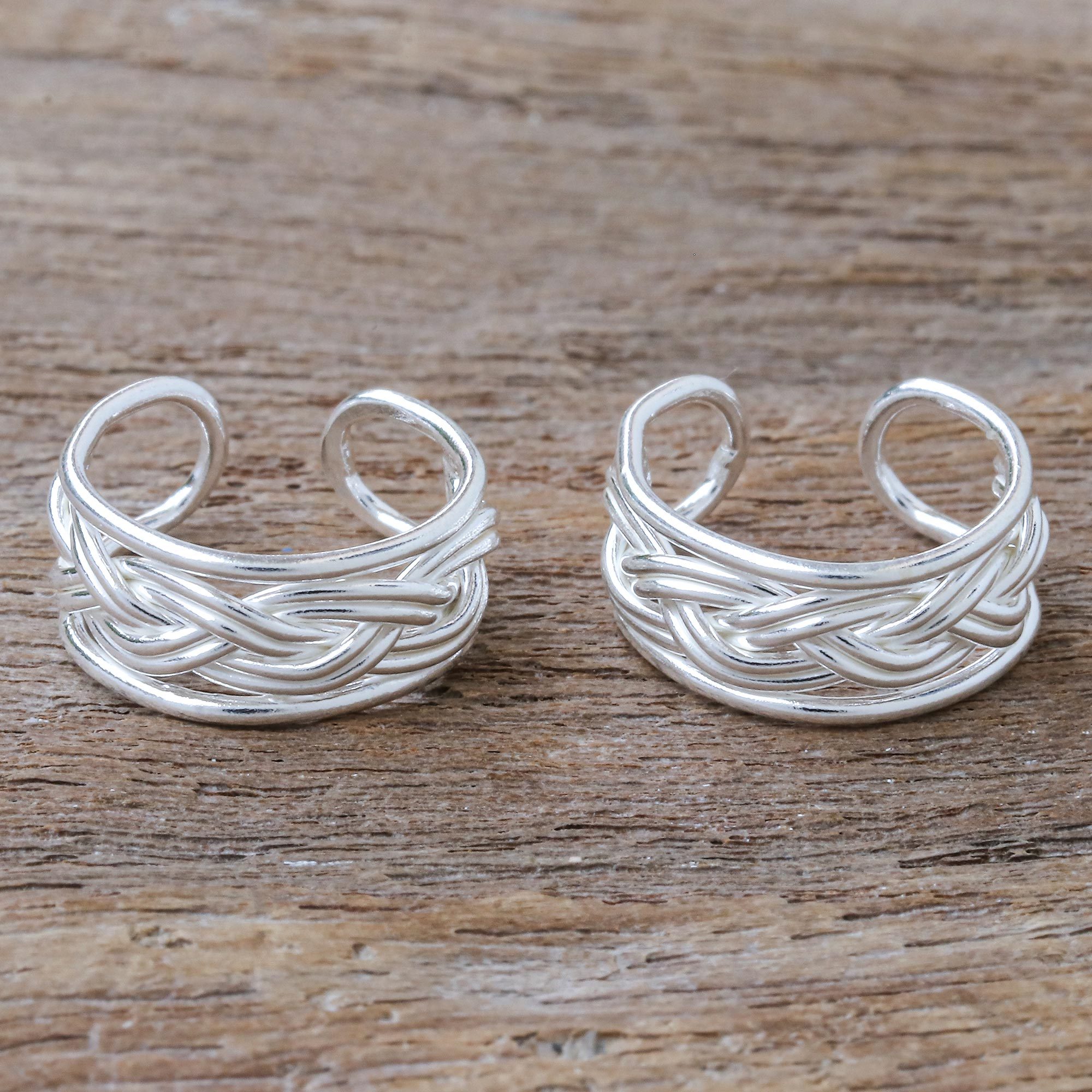 Woven Sterling Silver Ear Cuffs, 'Undertow'