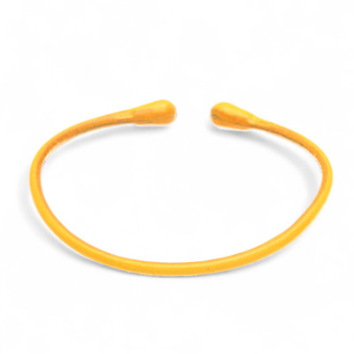 Minimalist form meets modern color in this leather cuff bracelet, where a dazzling yellow hue adds vibrancy to its clean, open curve. An aluminum wire base keeps it flexible for everyday wear. Created by Thailand's Chang, it's a statement in simplicity, crafted to complement any look.