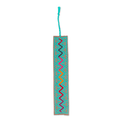 Zig-Zag-Patterned Celadon 100% Cotton Bookmark from Mexico, 'Celadon Rainbow'
